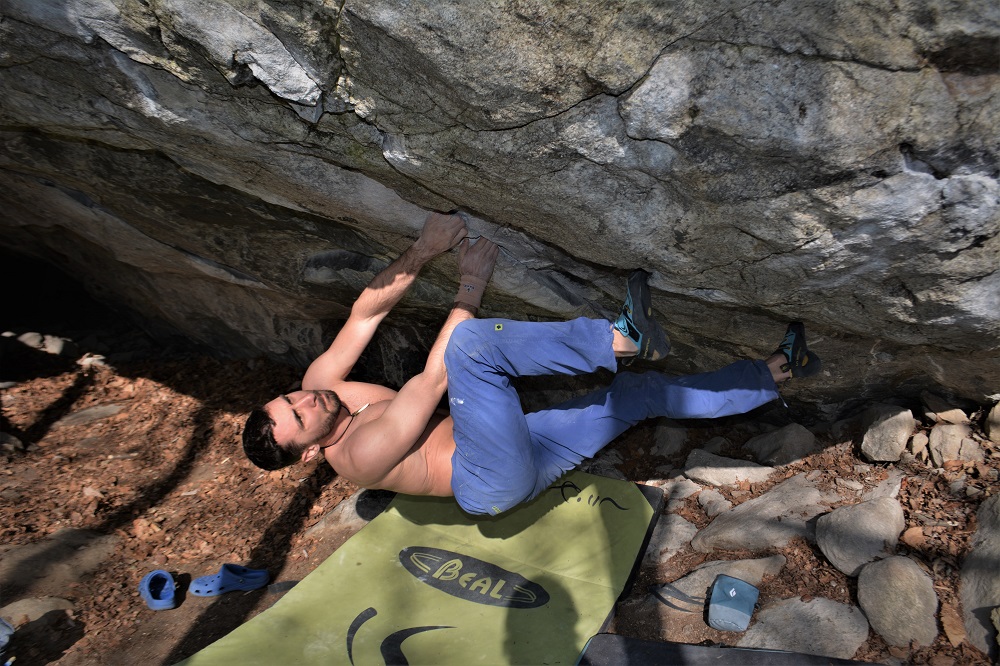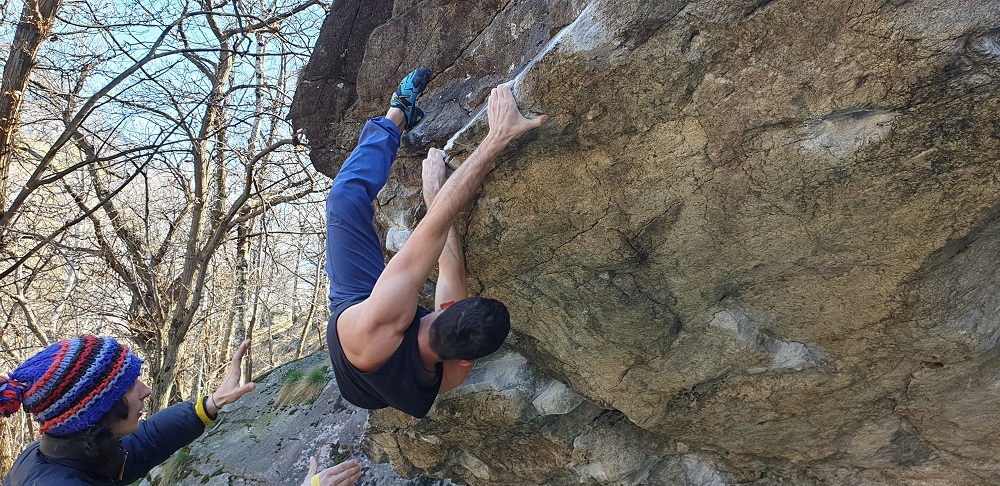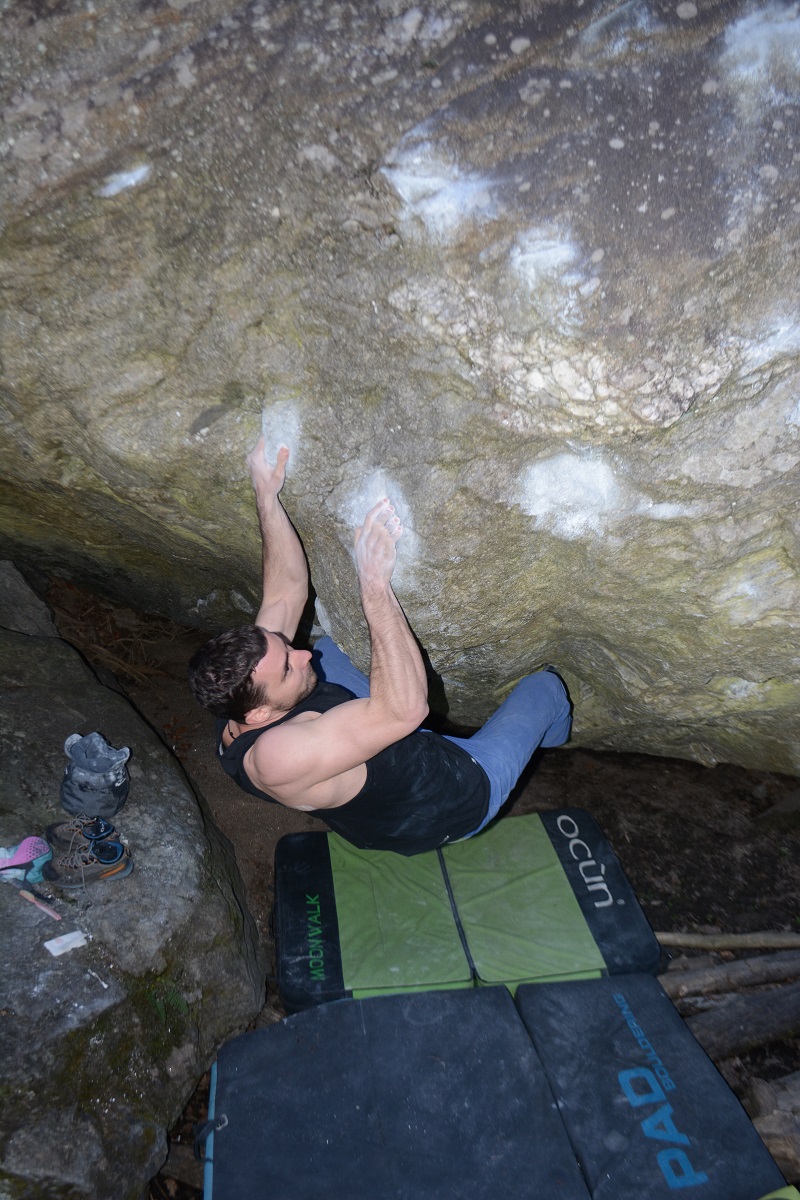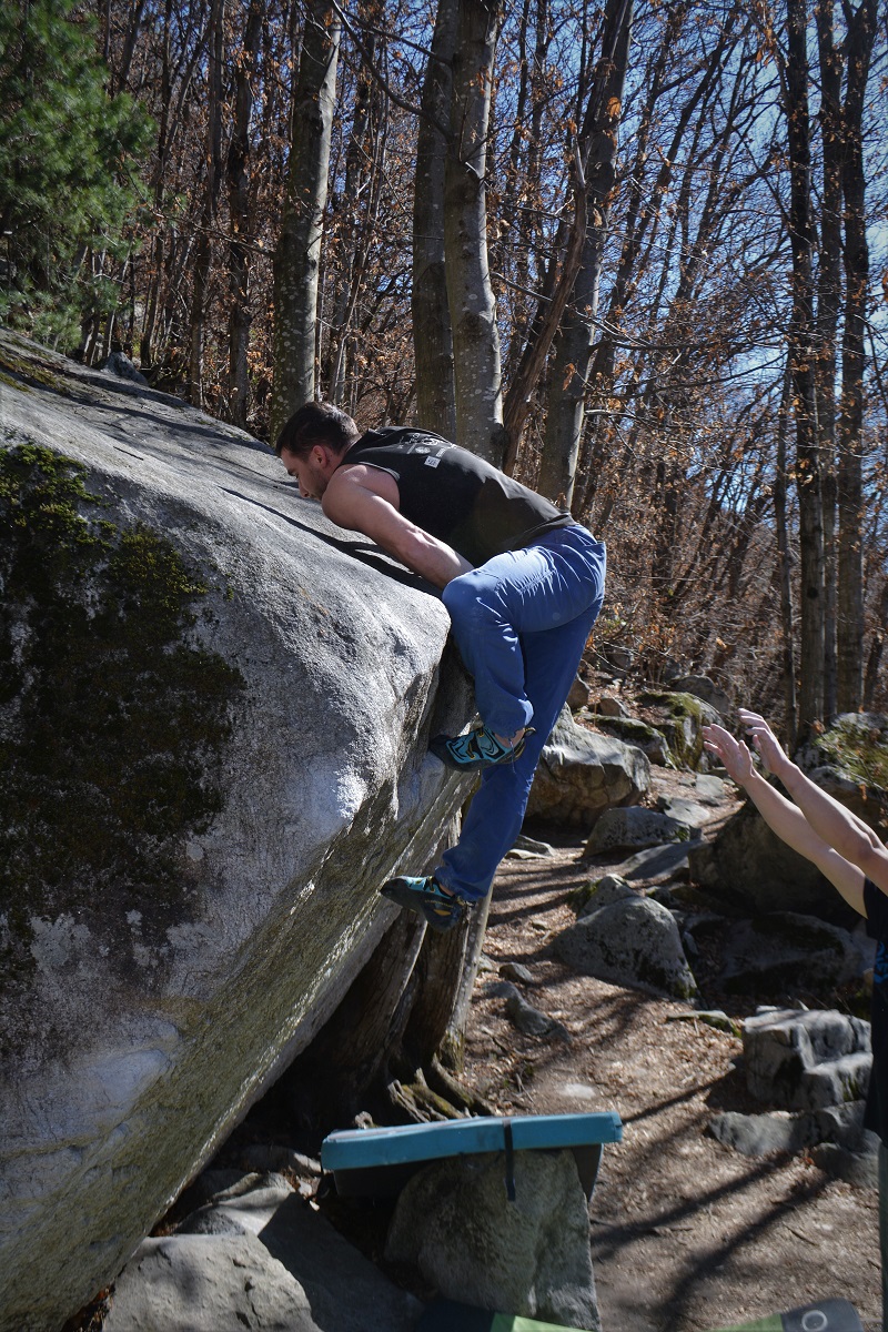 Prvé tri dni výjazdu sme na preskáčku navštívili Chironico, Cresciano a opäť Chironico. Hneď prvý deň mňa s Adamom aj samého seba pri rozleze pekne vystrašil Juro. Pri výleze „ľahkého“ a „zahrievacieho“ 6B+ sa zrazu zastavil na hrane kameňa, kmital nohami a napínal tricepsy. Predsa len, tri-štyri metre nad zemou to už mohli byť. Nakoniec nevyšiel na psí-tridsiatok, no solídnych desať minút sa spamätával. Chvíľu na to som si do dlane spravil tri parádne diery. Neodhadol som stabilitu balvanov podo mnou. Aj napriek tomu sme všetci traja vyliezli Bella gnocca 7A+. Mne sa podarilo spraviť aj tri ťažké kroky Komilator-a 7C. Na prvý deň bolo zarobené.
