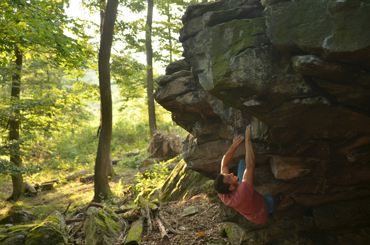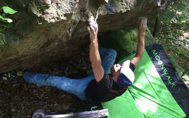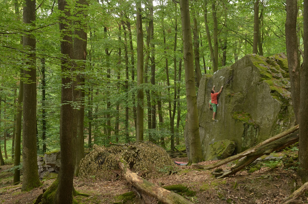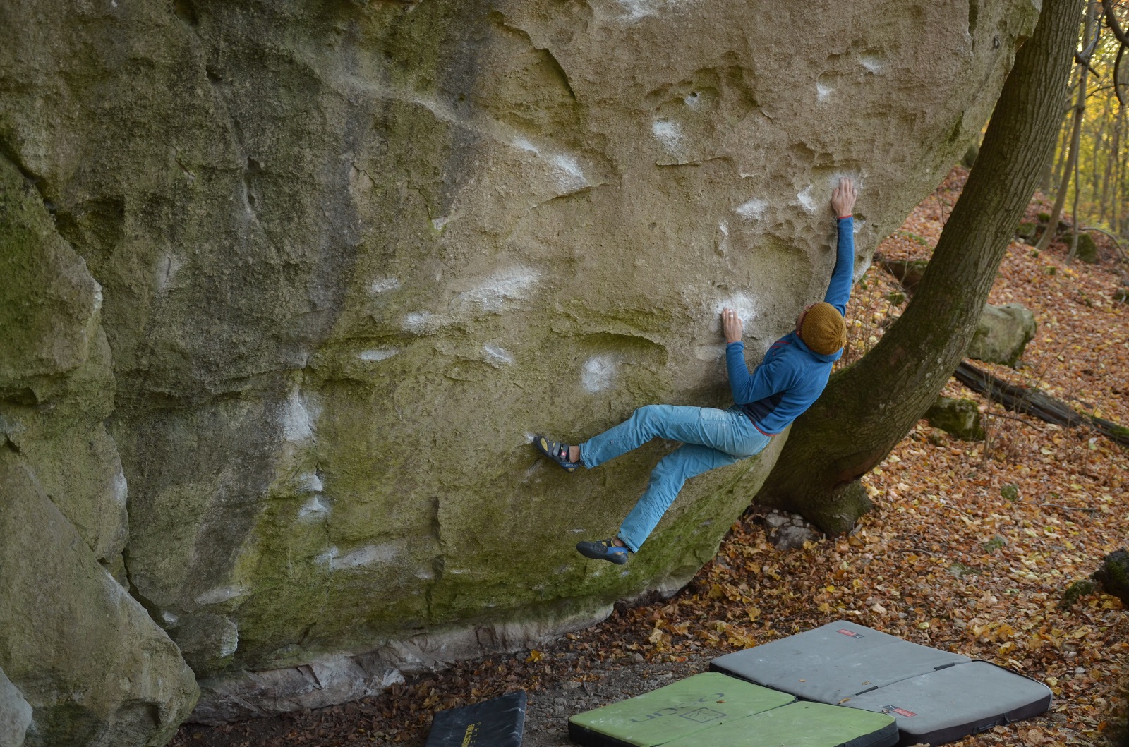 Nemám rád highbally. A keď hovorím highball, nemyslím highball, ale hocičo tak nad 5 metrov. Napríklad ako tento boulder, ktorý má kľúčový krok niekde v trištvrtke a teoreticky sa dá solídne padnúť. Na druhej strane, aspoň som zistil, že po malých lištách dokážem pár metrov aj zliezť. Alebo že mi po dvoch minútach boulderingu môže pol hodinu búšiť srdce. Ak sa teraz pýtate, prečo som sa do bouldra vôbec pustil, tak neviem. Asi preto, že tam bol, alebo preto, že ma donútili. Pravda je však taká, že je to neskutočná linka, krásna a príťažlivá. Snáď nebudete takí naivní, aby ste sa pýtali, prečo z nej nemám fotku. Kto vedel fotiť, vedel aj chytať!